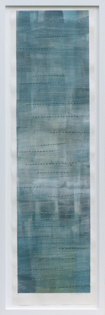 Step into the quiet mystery of “Fog”, an aquatint copper etching by Kristine DeNinno, printed with a master printmaker at the prestigious Crown Point Press. With its elongated format—16" x 6" (framed to 18" x 8")—this piece invites viewers into a meditative landscape where atmosphere and emotion converge.