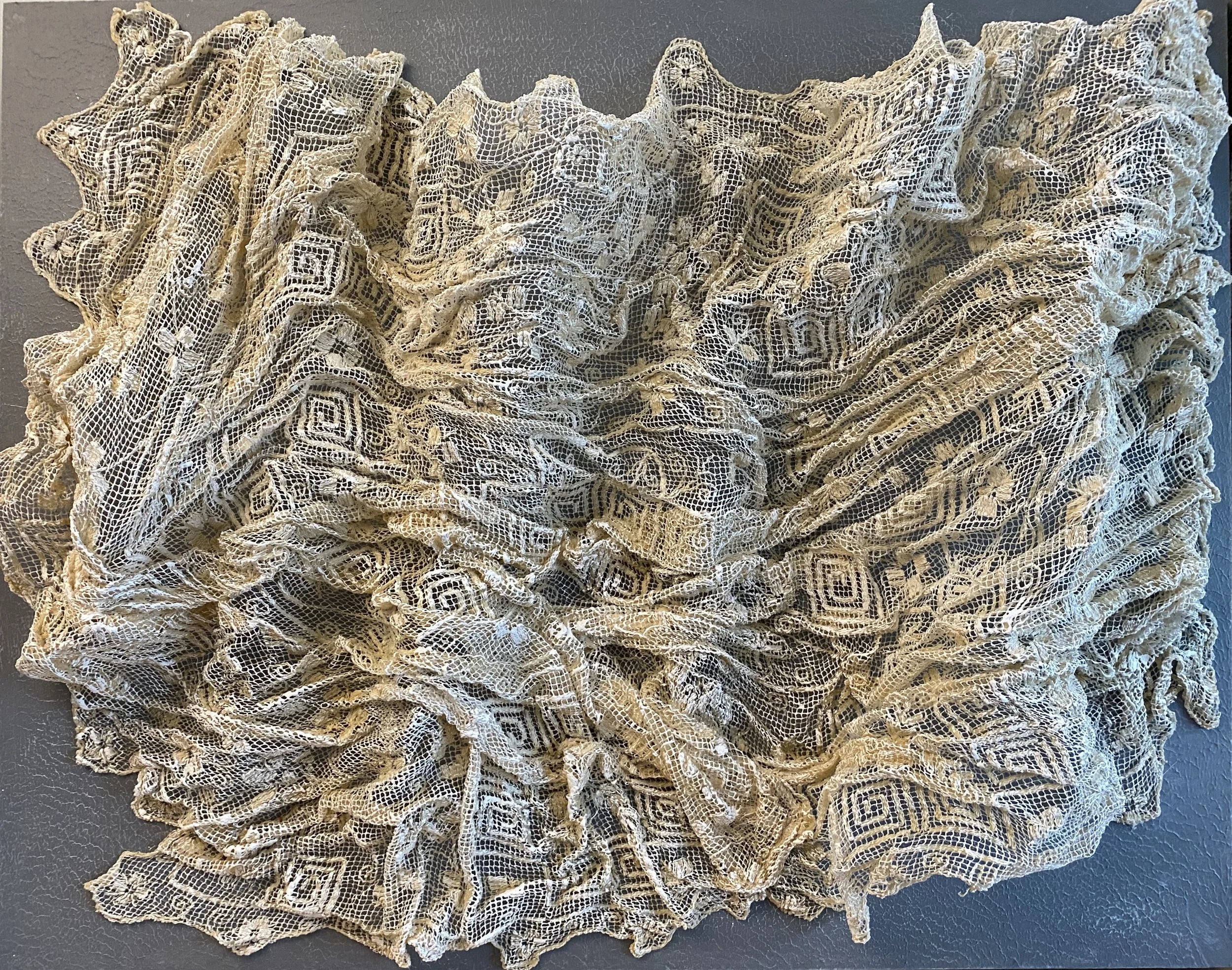 BLOWING IN THE WIND - 40” x 32 “ x 4”, handmade lace on chicken wire & board